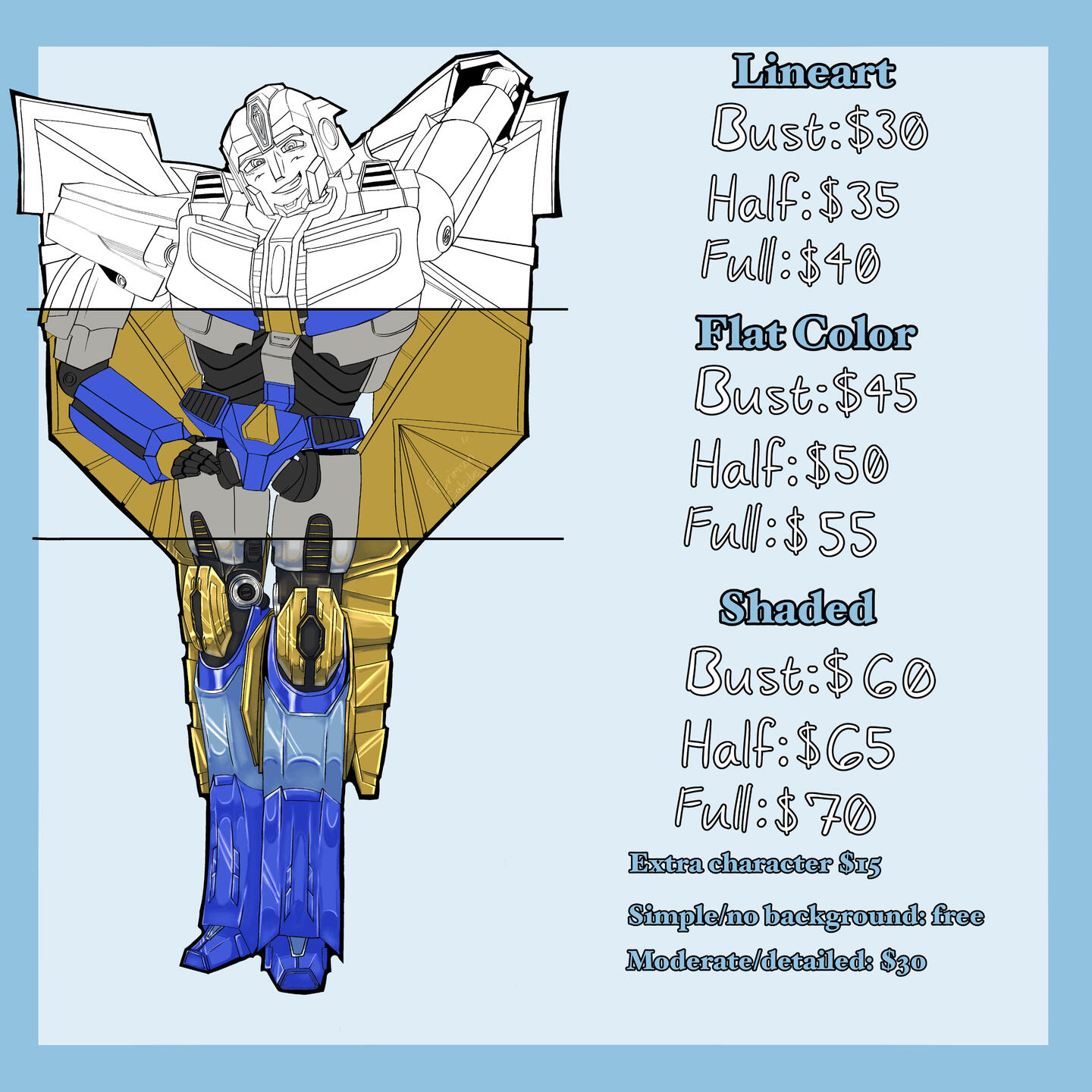 Please contact me for any inquiries/anything else that may not be listed here. I may refuse a commission for personal reasons without disclosure.